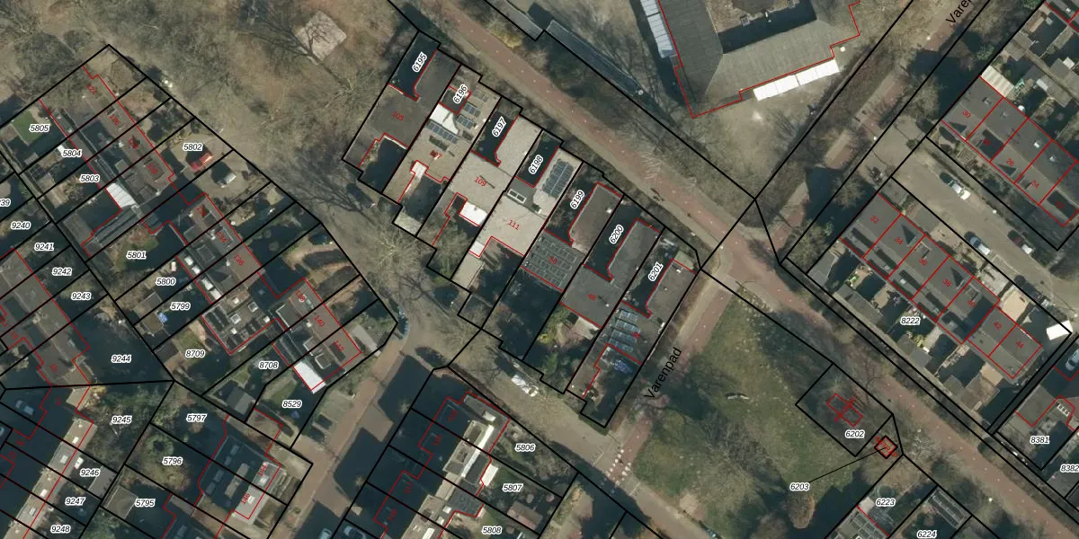 Gebruik de zoekbalk of klik op een perceel voor informatie over de adressen binnen dit perceel.