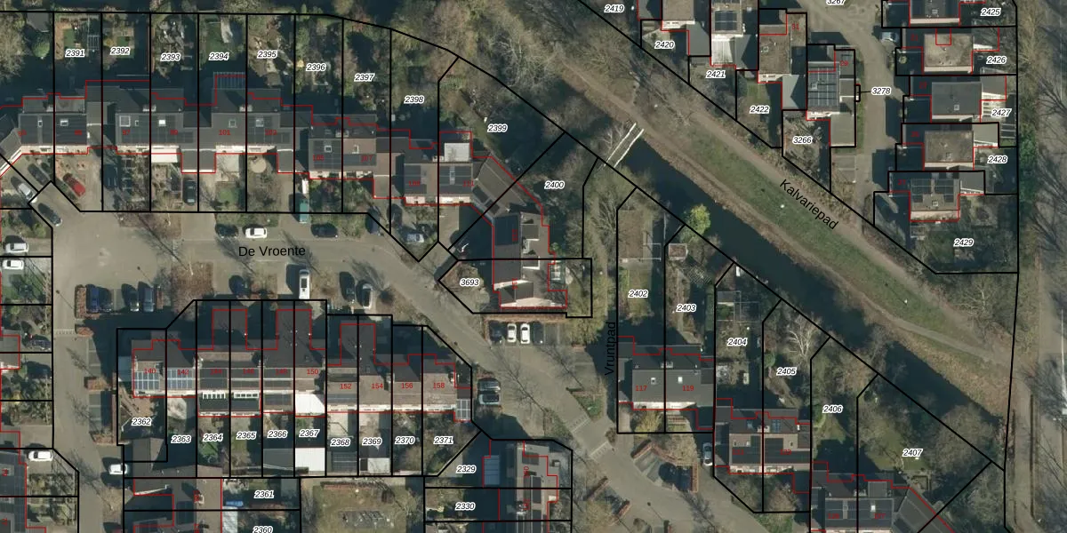 Het perceel waarop De Vroente 115 staat heeft een oppervlakte van 264 m². Dit is een middelgroot perceel. De perceeloppervlakte wordt geregistreerd door het Kadaster. Gedetailleerde informatie over de maten van dit perceel kunt u vinden in het rapport Kadastrale kaart met maatvoering van De Vroente 115.