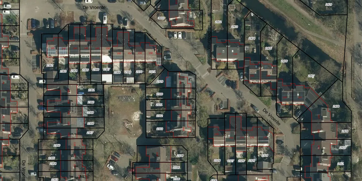 Het perceel waarop De Vroente 162 staat heeft een oppervlakte van 162 m². Dit is een middelgroot perceel. De perceeloppervlakte wordt geregistreerd door het Kadaster. Gedetailleerde informatie over de maten van dit perceel kunt u vinden in het rapport Kadastrale kaart met maatvoering van De Vroente 162.