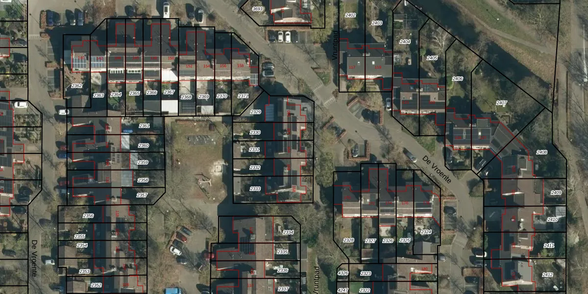 Het perceel waarop De Vroente 164 staat heeft een oppervlakte van 162 m². Dit is een middelgroot perceel. De perceeloppervlakte wordt geregistreerd door het Kadaster. Gedetailleerde informatie over de maten van dit perceel kunt u vinden in het rapport Kadastrale kaart met maatvoering van De Vroente 164.