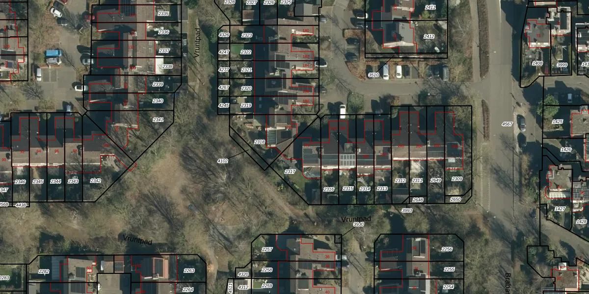 Het perceel waarop De Vroente 192 staat heeft een oppervlakte van 296 m². Dit is een middelgroot perceel. De perceeloppervlakte wordt geregistreerd door het Kadaster. Gedetailleerde informatie over de maten van dit perceel kunt u vinden in het rapport Kadastrale kaart met maatvoering van De Vroente 192.
