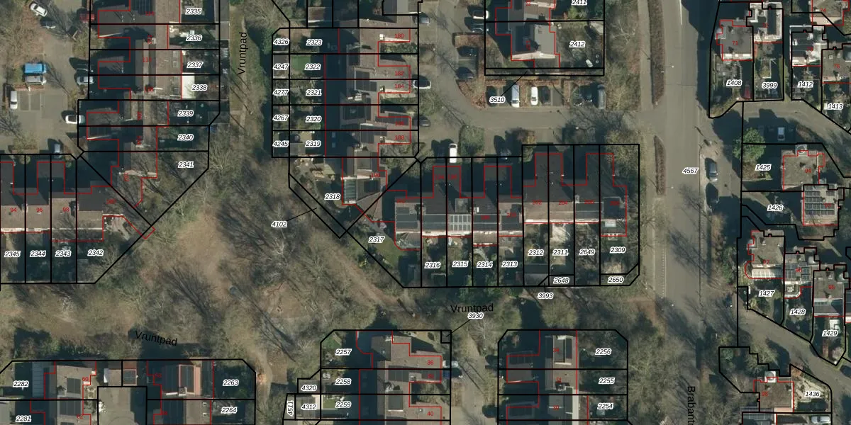 Het perceel waarop De Vroente 194 staat heeft een oppervlakte van 181 m². Dit is een middelgroot perceel. De perceeloppervlakte wordt geregistreerd door het Kadaster. Gedetailleerde informatie over de maten van dit perceel kunt u vinden in het rapport Kadastrale kaart met maatvoering van De Vroente 194.