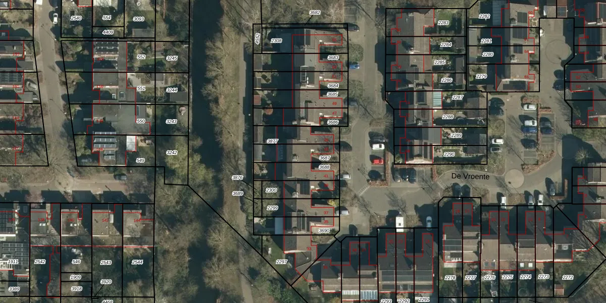 Het perceel waarop De Vroente 43 staat heeft een oppervlakte van 171 m². Dit is een middelgroot perceel. De perceeloppervlakte wordt geregistreerd door het Kadaster. Gedetailleerde informatie over de maten van dit perceel kunt u vinden in het rapport Kadastrale kaart met maatvoering van De Vroente 43.