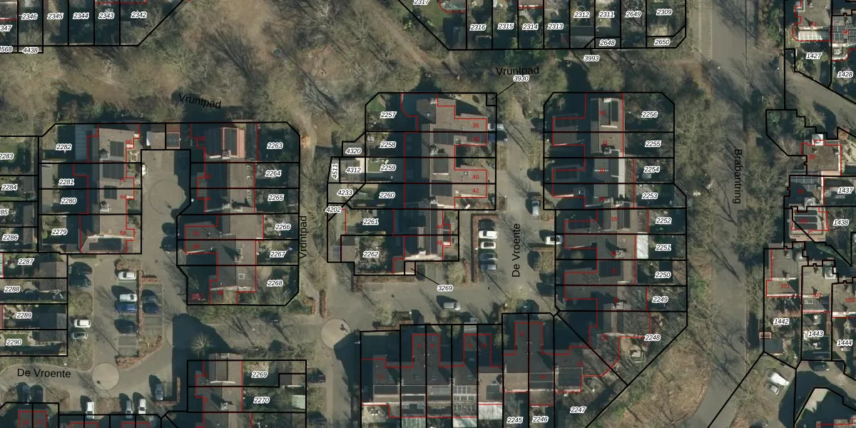 Het perceel waarop De Vroente 44 staat heeft een oppervlakte van 203 m². Dit is een middelgroot perceel. De perceeloppervlakte wordt geregistreerd door het Kadaster. Gedetailleerde informatie over de maten van dit perceel kunt u vinden in het rapport Kadastrale kaart met maatvoering van De Vroente 44.