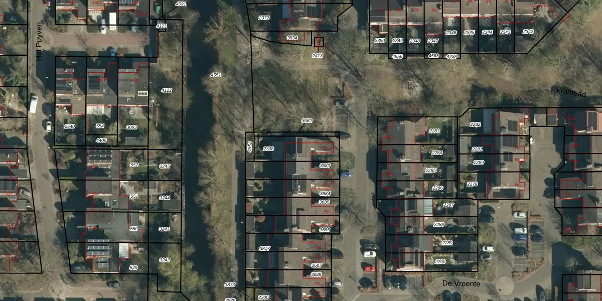 Het perceel waarop De Vroente 55 staat heeft een oppervlakte van 233 m². Dit is een middelgroot perceel. De perceeloppervlakte wordt geregistreerd door het Kadaster. Gedetailleerde informatie over de maten van dit perceel kunt u vinden in het rapport Kadastrale kaart met maatvoering van De Vroente 55.