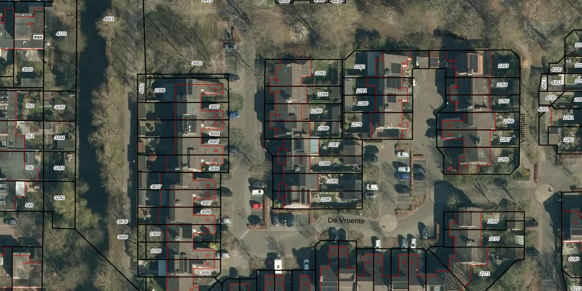Het perceel waarop De Vroente 74 staat heeft een oppervlakte van 198 m². Dit is een middelgroot perceel. De perceeloppervlakte wordt geregistreerd door het Kadaster. Gedetailleerde informatie over de maten van dit perceel kunt u vinden in het rapport Kadastrale kaart met maatvoering van De Vroente 74.