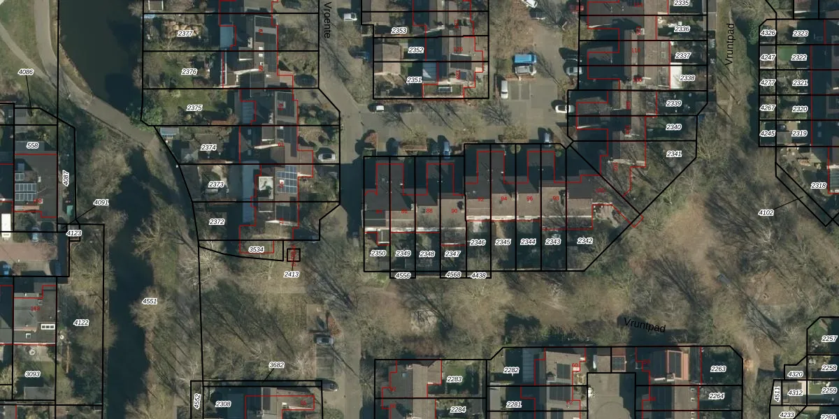 De Vroente 88 is gelegen op kadastraal perceel NNN00F2348. Deze kadastrale aanduiding is uniek en wordt gebruikt door het Kadaster om eigendomsrechten en andere zakelijke rechten vast te leggen. Het perceel maakt onderdeel uit van de kadastrale gemeente Nuenen.