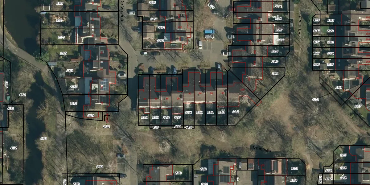 De Vroente 92 is gelegen op kadastraal perceel NNN00F2346. Deze kadastrale aanduiding is uniek en wordt gebruikt door het Kadaster om eigendomsrechten en andere zakelijke rechten vast te leggen. Het perceel maakt onderdeel uit van de kadastrale gemeente Nuenen.
