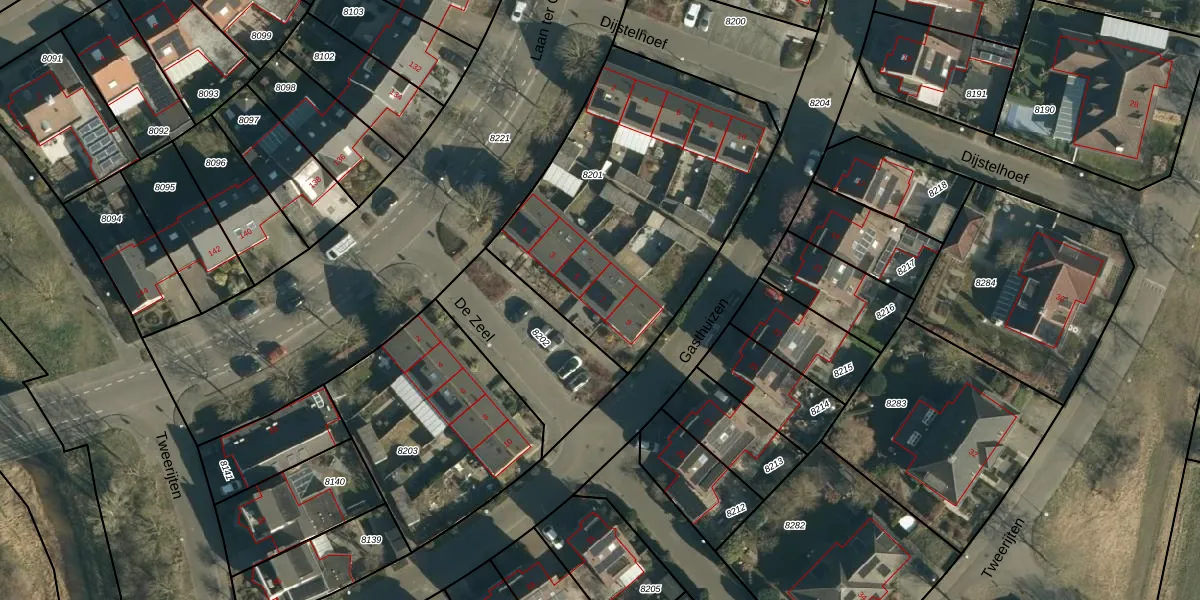 Het perceel waarop De Zeel 7 staat heeft een oppervlakte van 1438 m². Dit is een zeer groot perceel. De perceeloppervlakte wordt geregistreerd door het Kadaster. Gedetailleerde informatie over de maten van dit perceel kunt u vinden in het rapport Kadastrale kaart met maatvoering van De Zeel 7.