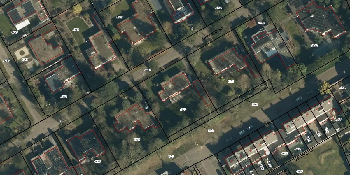 Dennenlaan 10 is gelegen op kadastraal perceel NNN00E4810. Deze kadastrale aanduiding is uniek en wordt gebruikt door het Kadaster om eigendomsrechten en andere zakelijke rechten vast te leggen. Het perceel maakt onderdeel uit van de kadastrale gemeente Nuenen.