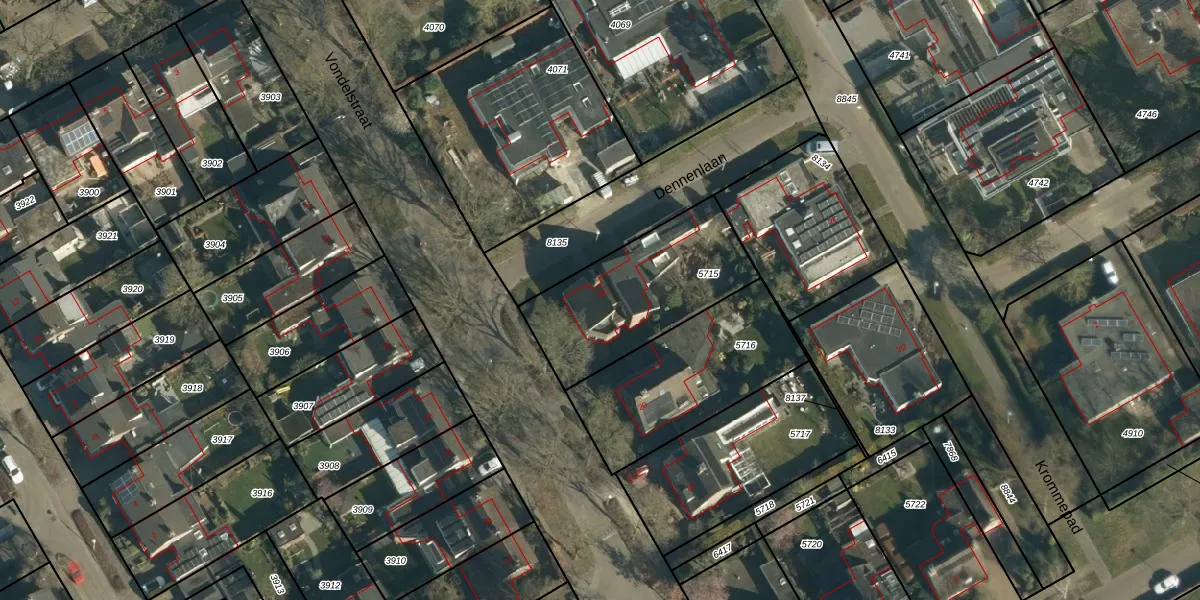Het perceel waarop Dennenlaan 2-B staat heeft een oppervlakte van 601 m². Dit is een groot perceel. De perceeloppervlakte wordt geregistreerd door het Kadaster. Gedetailleerde informatie over de maten van dit perceel kunt u vinden in het rapport Kadastrale kaart met maatvoering van Dennenlaan 2-B.