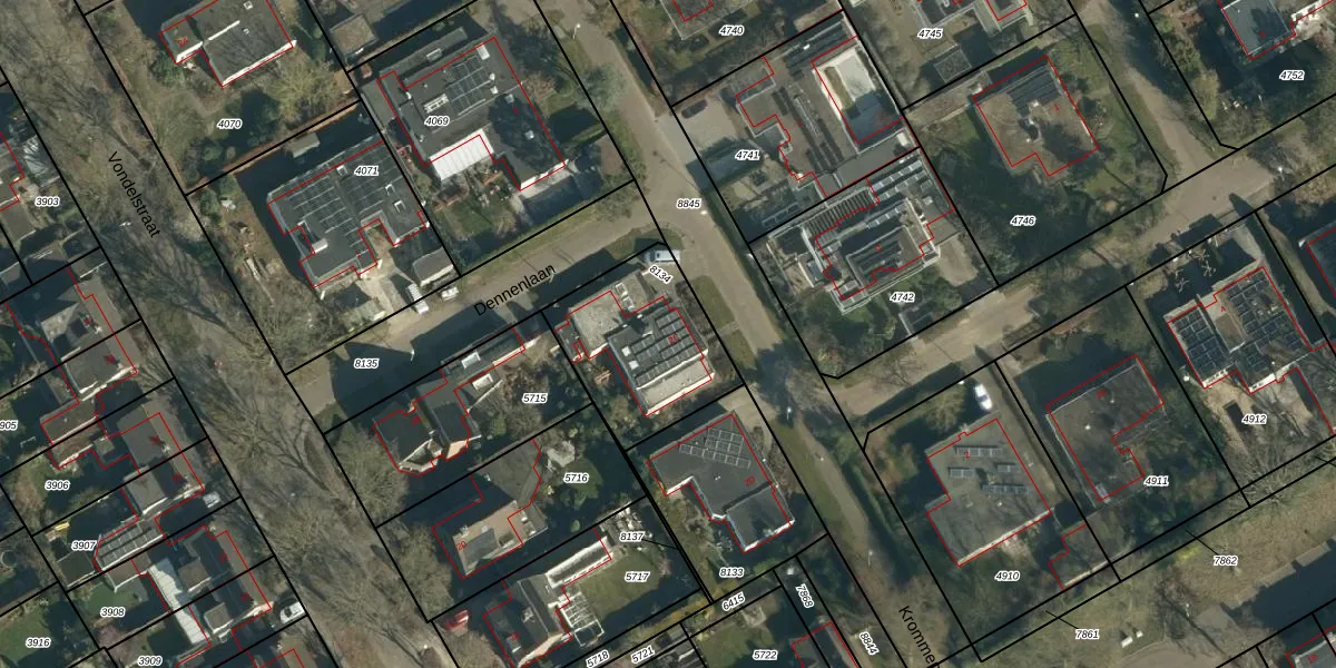 Gebruik de zoekbalk of klik op een perceel voor informatie over de adressen binnen dit perceel.