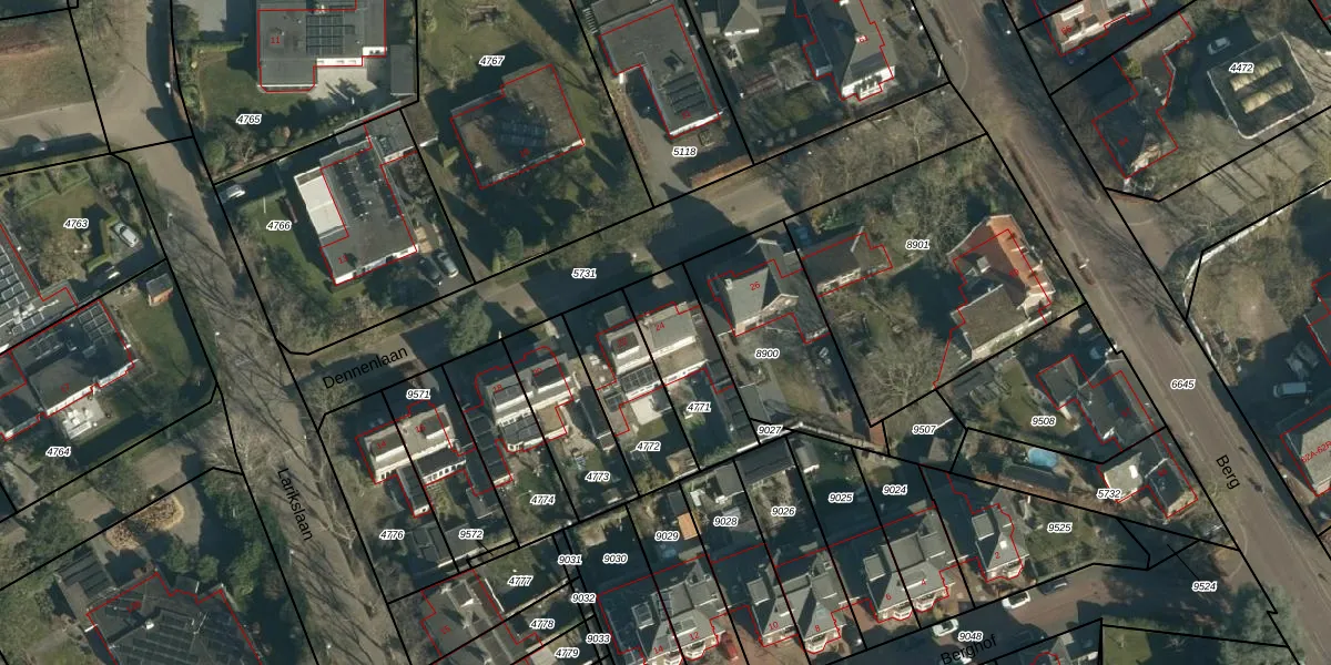 Dennenlaan 24 is gelegen op kadastraal perceel NNN00E4771. Deze kadastrale aanduiding is uniek en wordt gebruikt door het Kadaster om eigendomsrechten en andere zakelijke rechten vast te leggen. Het perceel maakt onderdeel uit van de kadastrale gemeente Nuenen.