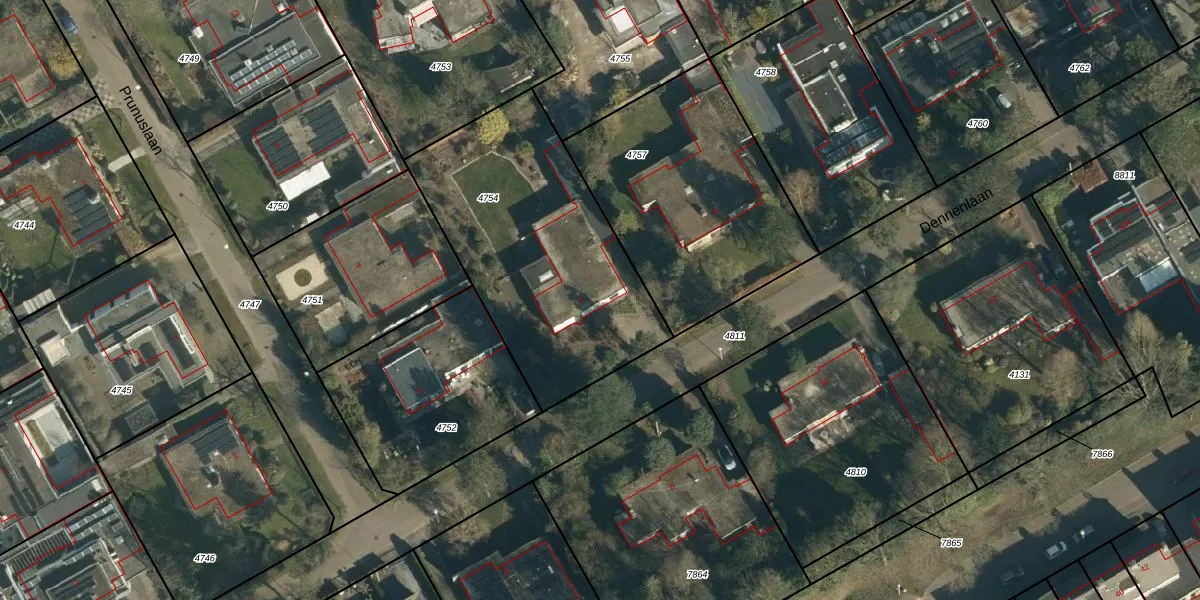 Dennenlaan 7 is gelegen op kadastraal perceel NNN00E4754. Deze kadastrale aanduiding is uniek en wordt gebruikt door het Kadaster om eigendomsrechten en andere zakelijke rechten vast te leggen. Het perceel maakt onderdeel uit van de kadastrale gemeente Nuenen.