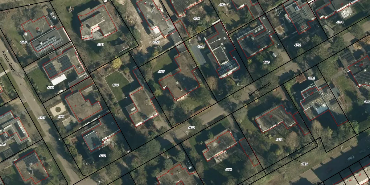 Het perceel waarop Dennenlaan 9 staat heeft een oppervlakte van 1054 m². Dit is een zeer groot perceel. De perceeloppervlakte wordt geregistreerd door het Kadaster. Gedetailleerde informatie over de maten van dit perceel kunt u vinden in het rapport Kadastrale kaart met maatvoering van Dennenlaan 9.