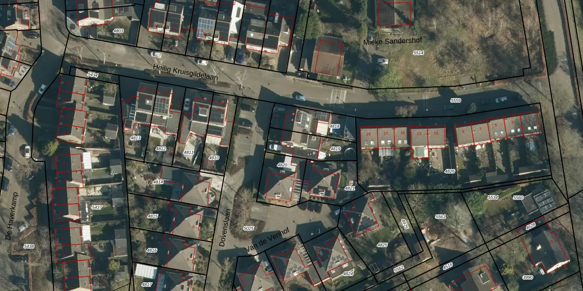 Dovenslaan 3 is gelegen op kadastraal perceel NNN00B4819. Deze kadastrale aanduiding is uniek en wordt gebruikt door het Kadaster om eigendomsrechten en andere zakelijke rechten vast te leggen. Het perceel maakt onderdeel uit van de kadastrale gemeente Nuenen.