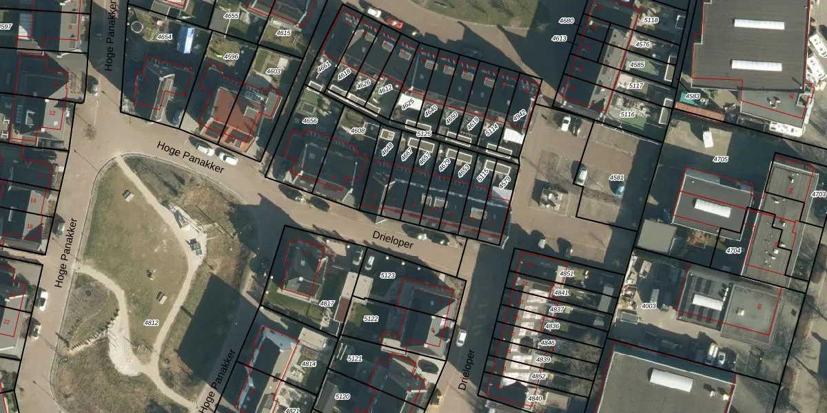Gebruik de zoekbalk of klik op een perceel voor informatie over de adressen binnen dit perceel.