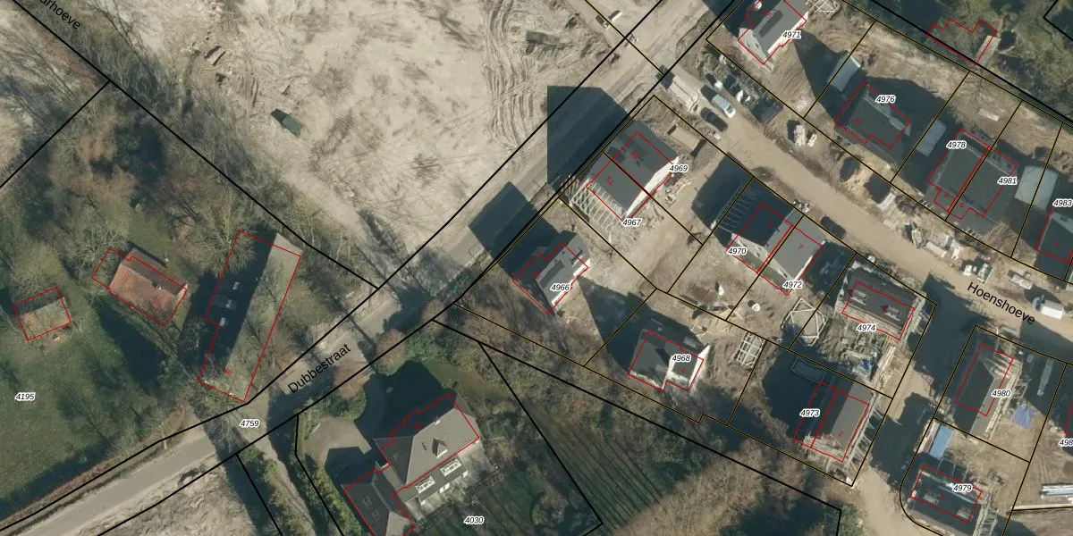 Dubbestraat 53 is gelegen op kadastraal perceel NNN00D4966. Deze kadastrale aanduiding is uniek en wordt gebruikt door het Kadaster om eigendomsrechten en andere zakelijke rechten vast te leggen. Het perceel maakt onderdeel uit van de kadastrale gemeente Nuenen.