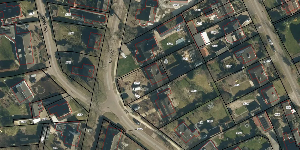 Het perceel waarop Eeneind 21 staat heeft een oppervlakte van 585 m². Dit is een groot perceel. De perceeloppervlakte wordt geregistreerd door het Kadaster. Gedetailleerde informatie over de maten van dit perceel kunt u vinden in het rapport Kadastrale kaart met maatvoering van Eeneind 21.