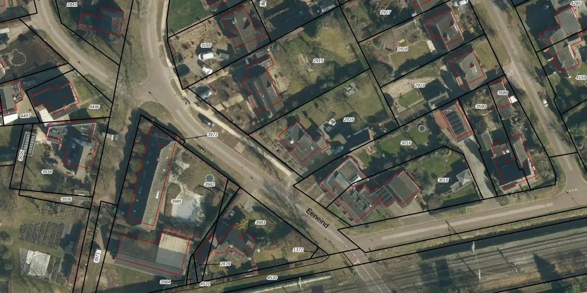 Het perceel waarop Eeneind 25 staat heeft een oppervlakte van 945 m². Dit is een groot perceel. De perceeloppervlakte wordt geregistreerd door het Kadaster. Gedetailleerde informatie over de maten van dit perceel kunt u vinden in het rapport Kadastrale kaart met maatvoering van Eeneind 25.