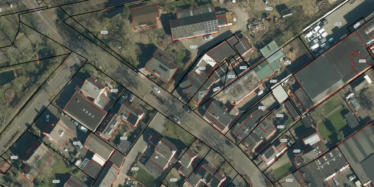 Het perceel waarop Eeneind 33 staat heeft een oppervlakte van 406 m². Dit is een groot perceel. De perceeloppervlakte wordt geregistreerd door het Kadaster. Gedetailleerde informatie over de maten van dit perceel kunt u vinden in het rapport Kadastrale kaart met maatvoering van Eeneind 33.