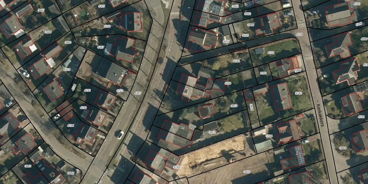 Gebruik de zoekbalk of klik op een perceel voor informatie over de adressen binnen dit perceel.