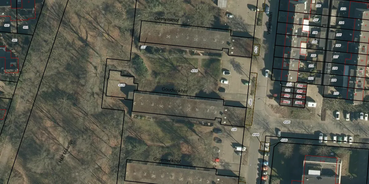 Goudvinkhof 6 is gelegen op kadastraal perceel NNN00F4009. Deze kadastrale aanduiding is uniek en wordt gebruikt door het Kadaster om eigendomsrechten en andere zakelijke rechten vast te leggen. Het perceel maakt onderdeel uit van de kadastrale gemeente Nuenen.