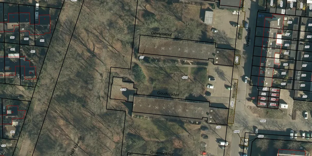 Het perceel waarop Goudvinkhof 84 staat heeft een oppervlakte van 8310 m². Dit is een zeer groot perceel. De perceeloppervlakte wordt geregistreerd door het Kadaster. Gedetailleerde informatie over de maten van dit perceel kunt u vinden in het rapport Kadastrale kaart met maatvoering van Goudvinkhof 84.