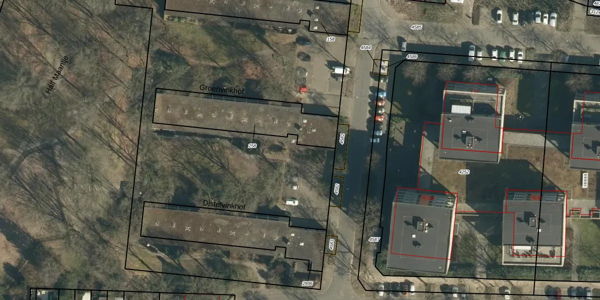 Het perceel waarop Groenvinkhof 12 staat heeft een oppervlakte van 8310 m². Dit is een zeer groot perceel. De perceeloppervlakte wordt geregistreerd door het Kadaster. Gedetailleerde informatie over de maten van dit perceel kunt u vinden in het rapport Kadastrale kaart met maatvoering van Groenvinkhof 12.