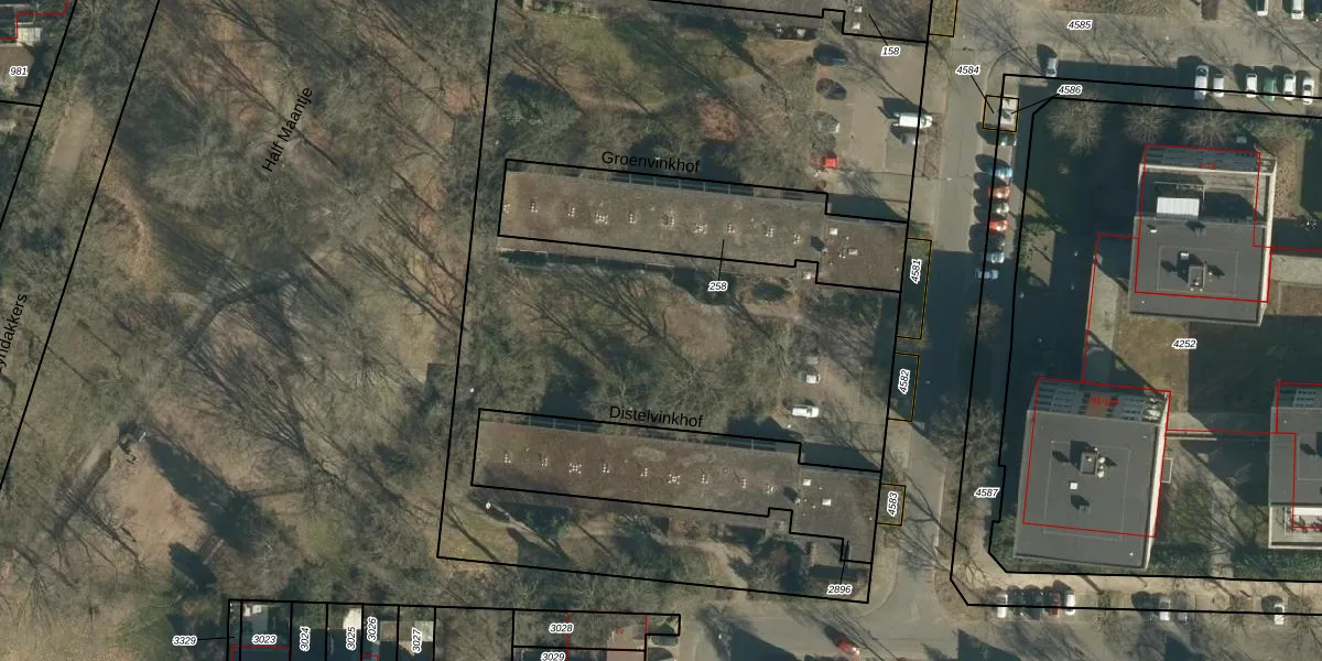 Het perceel waarop Groenvinkhof 56 staat heeft een oppervlakte van 8310 m². Dit is een zeer groot perceel. De perceeloppervlakte wordt geregistreerd door het Kadaster. Gedetailleerde informatie over de maten van dit perceel kunt u vinden in het rapport Kadastrale kaart met maatvoering van Groenvinkhof 56.