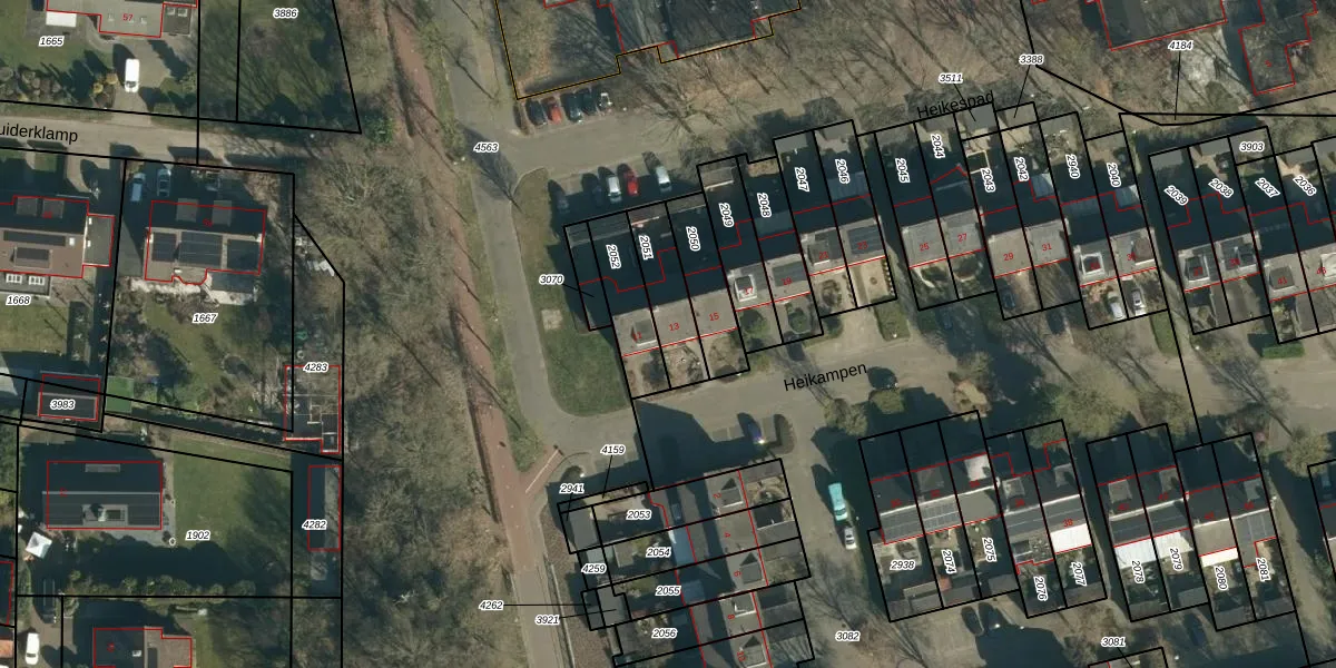 Het perceel waarop Heikampen 13 staat heeft een oppervlakte van 165 m². Dit is een middelgroot perceel. De perceeloppervlakte wordt geregistreerd door het Kadaster. Gedetailleerde informatie over de maten van dit perceel kunt u vinden in het rapport Kadastrale kaart met maatvoering van Heikampen 13.