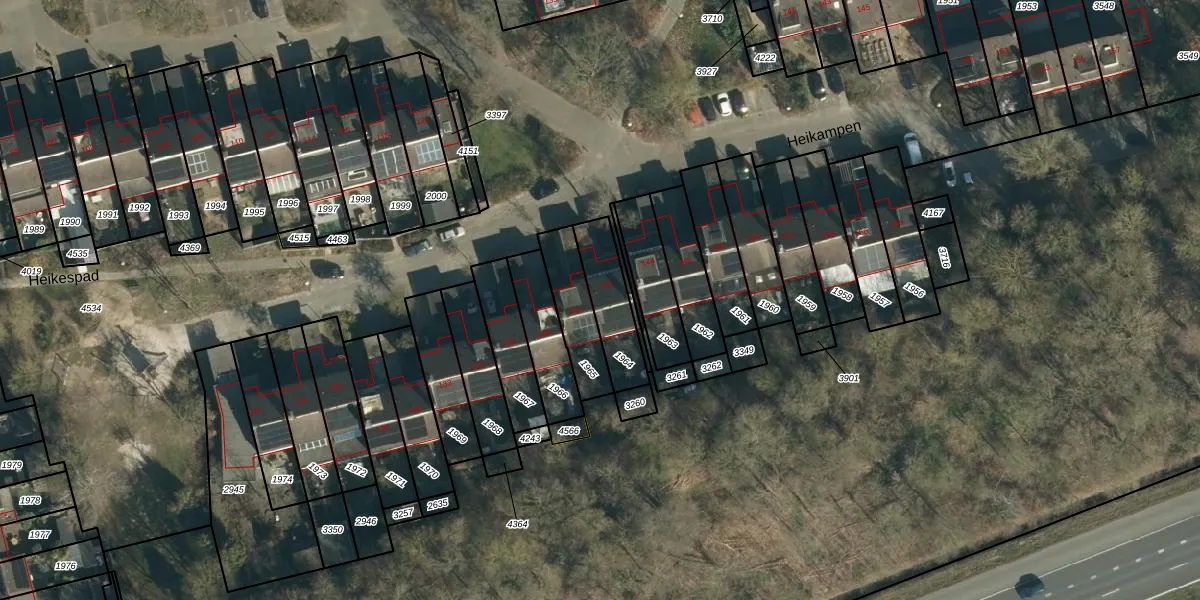 Het perceel waarop Heikampen 142 staat heeft een oppervlakte van 175 m². Dit is een middelgroot perceel. De perceeloppervlakte wordt geregistreerd door het Kadaster. Gedetailleerde informatie over de maten van dit perceel kunt u vinden in het rapport Kadastrale kaart met maatvoering van Heikampen 142.