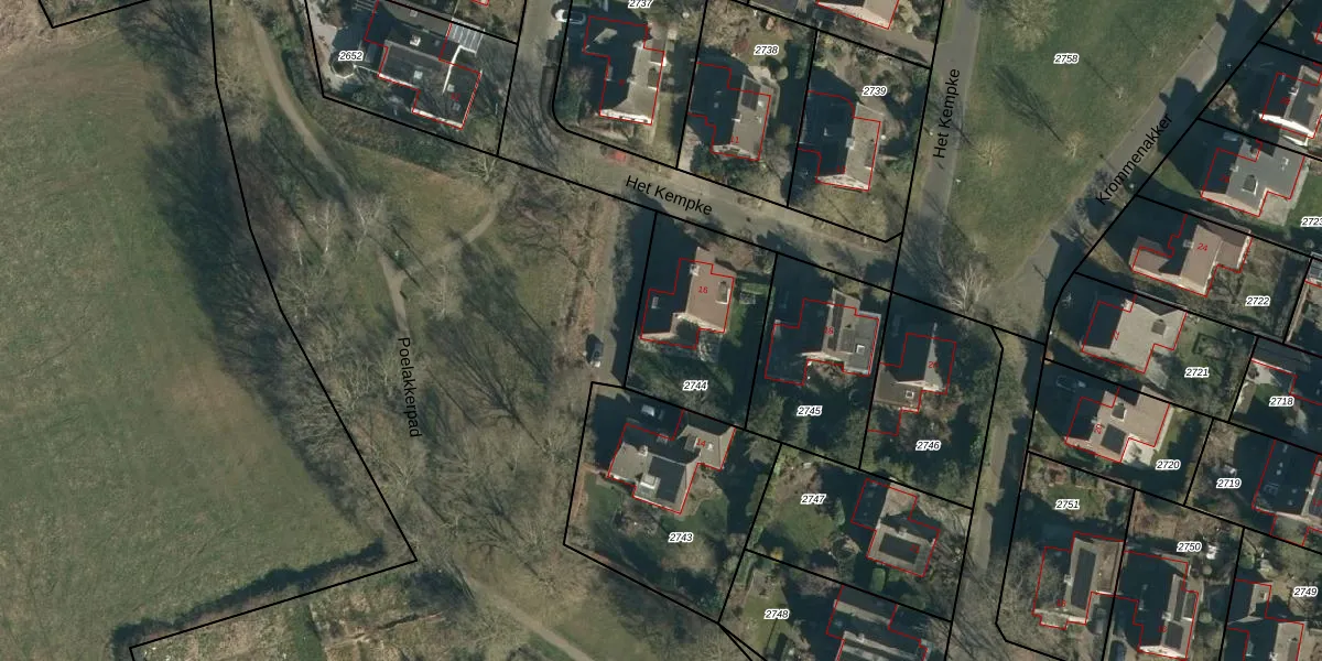 Het perceel waarop Het Kempke 16 staat heeft een oppervlakte van 520 m². Dit is een groot perceel. De perceeloppervlakte wordt geregistreerd door het Kadaster. Gedetailleerde informatie over de maten van dit perceel kunt u vinden in het rapport Kadastrale kaart met maatvoering van Het Kempke 16.