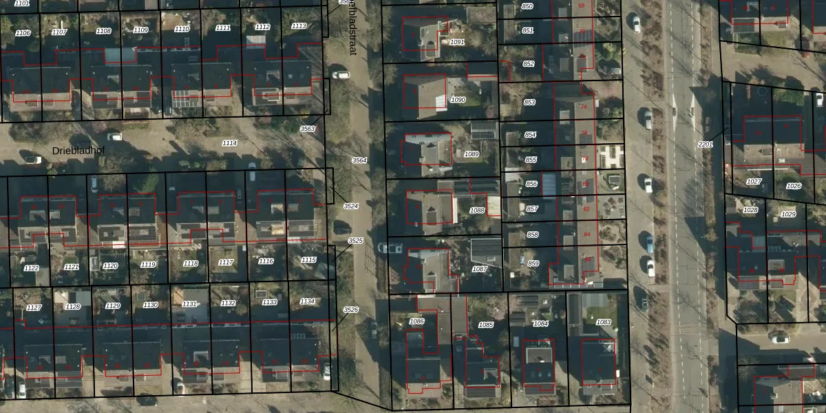 Gebruik de zoekbalk of klik op een perceel voor informatie over de adressen binnen dit perceel.