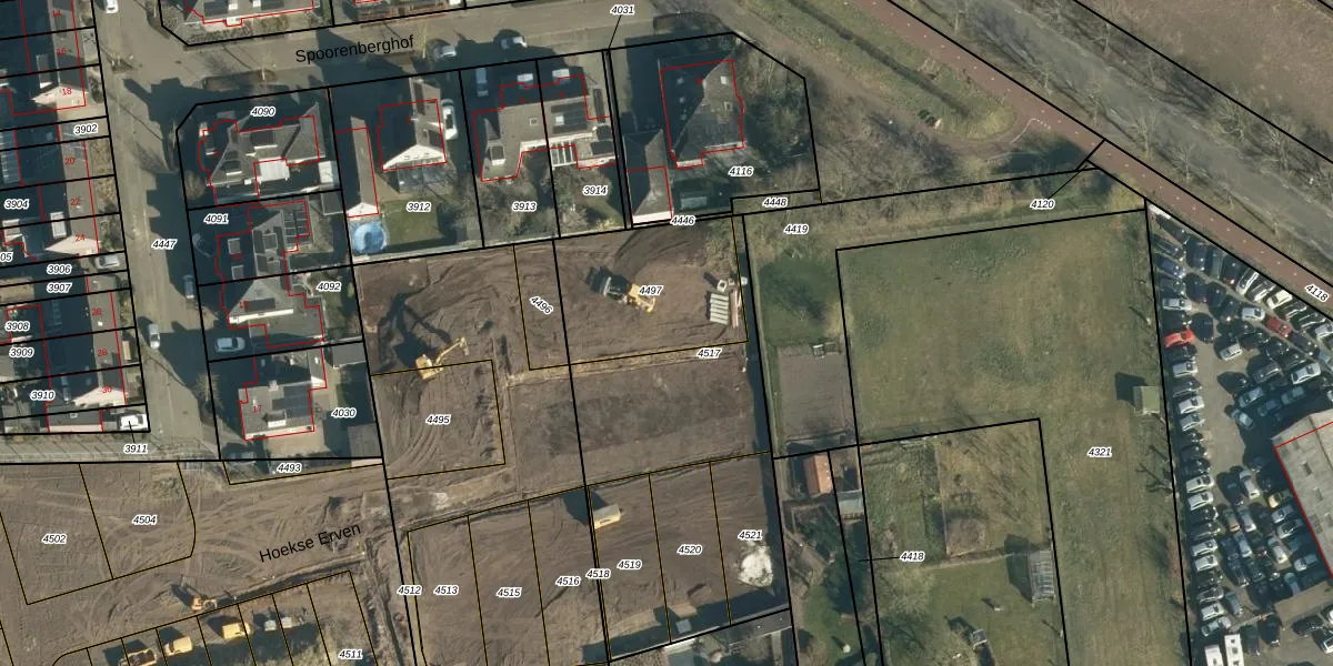 Het perceel waarop Hoekse Erven 18 staat heeft een oppervlakte van 515 m². Dit is een groot perceel. De perceeloppervlakte wordt geregistreerd door het Kadaster. Gedetailleerde informatie over de maten van dit perceel kunt u vinden in het rapport Kadastrale kaart met maatvoering van Hoekse Erven 18.