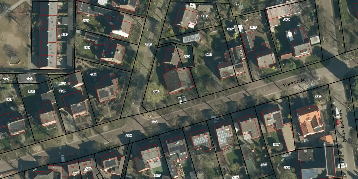 Het perceel waarop Hoekstraat 30 staat heeft een oppervlakte van 704 m². Dit is een groot perceel. De perceeloppervlakte wordt geregistreerd door het Kadaster. Gedetailleerde informatie over de maten van dit perceel kunt u vinden in het rapport Kadastrale kaart met maatvoering van Hoekstraat 30.
