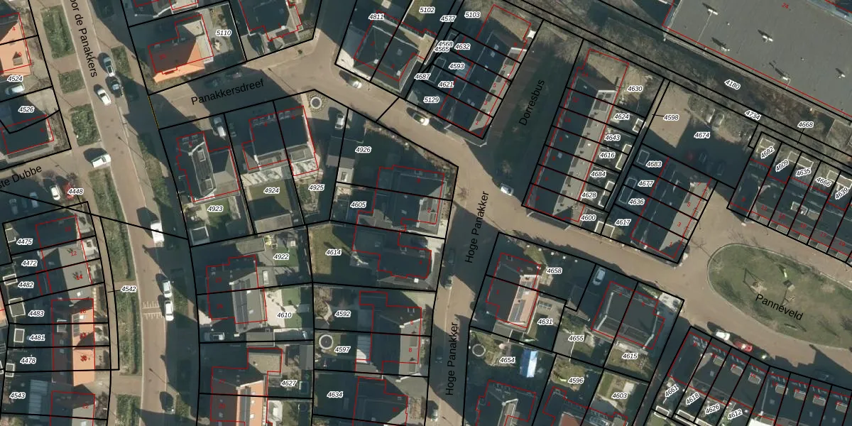 Het perceel waarop Hoge Panakker 2 staat heeft een oppervlakte van 253 m². Dit is een middelgroot perceel. De perceeloppervlakte wordt geregistreerd door het Kadaster. Gedetailleerde informatie over de maten van dit perceel kunt u vinden in het rapport Kadastrale kaart met maatvoering van Hoge Panakker 2.