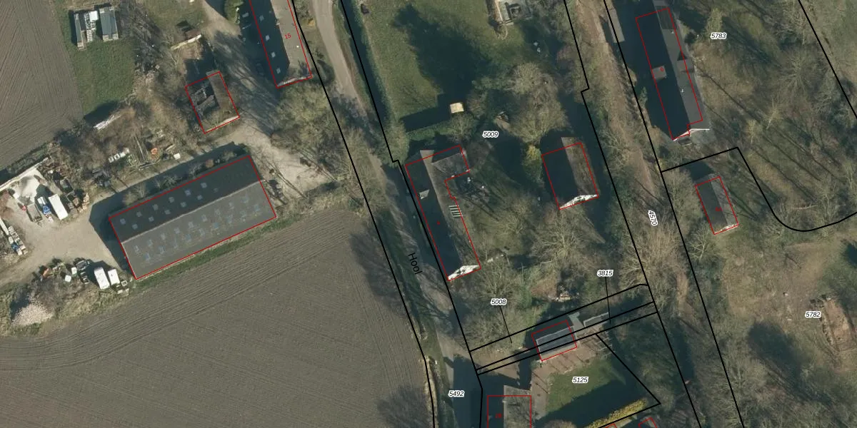 Het perceel waarop Hool 4 staat heeft een oppervlakte van 4128 m². Dit is een zeer groot perceel. De perceeloppervlakte wordt geregistreerd door het Kadaster. Gedetailleerde informatie over de maten van dit perceel kunt u vinden in het rapport Kadastrale kaart met maatvoering van Hool 4.
