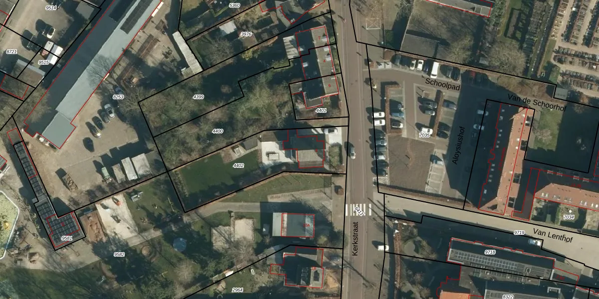 Het perceel waarop Kerkstraat 8 staat heeft een oppervlakte van 900 m². Dit is een groot perceel. De perceeloppervlakte wordt geregistreerd door het Kadaster. Gedetailleerde informatie over de maten van dit perceel kunt u vinden in het rapport Kadastrale kaart met maatvoering van Kerkstraat 8.
