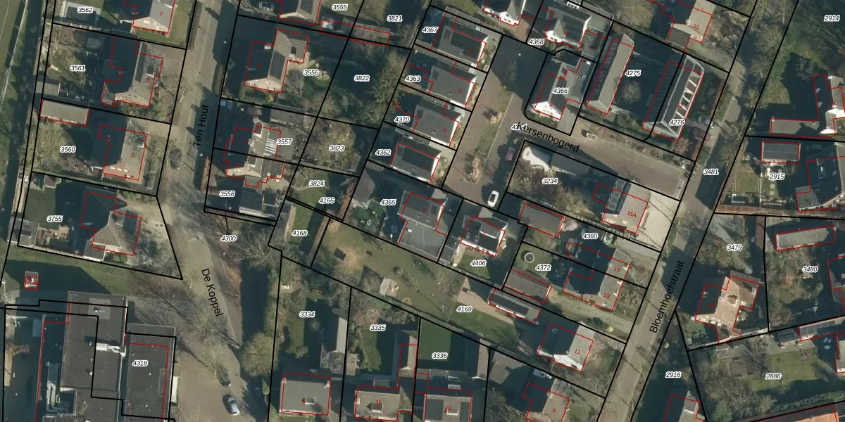 Het perceel waarop Kersenbogerd 2 staat heeft een oppervlakte van 401 m². Dit is een groot perceel. De perceeloppervlakte wordt geregistreerd door het Kadaster. Gedetailleerde informatie over de maten van dit perceel kunt u vinden in het rapport Kadastrale kaart met maatvoering van Kersenbogerd 2.