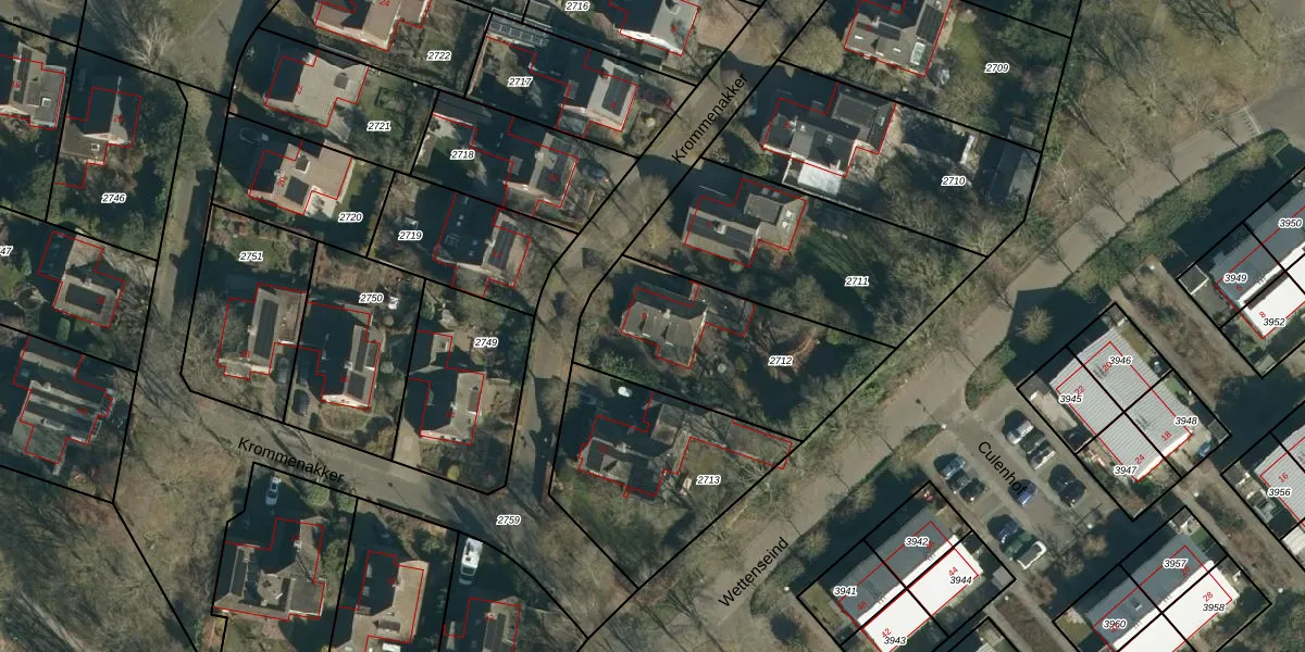 Krommenakker 9 is gelegen op kadastraal perceel NNN00F2712. Deze kadastrale aanduiding is uniek en wordt gebruikt door het Kadaster om eigendomsrechten en andere zakelijke rechten vast te leggen. Het perceel maakt onderdeel uit van de kadastrale gemeente Nuenen.
