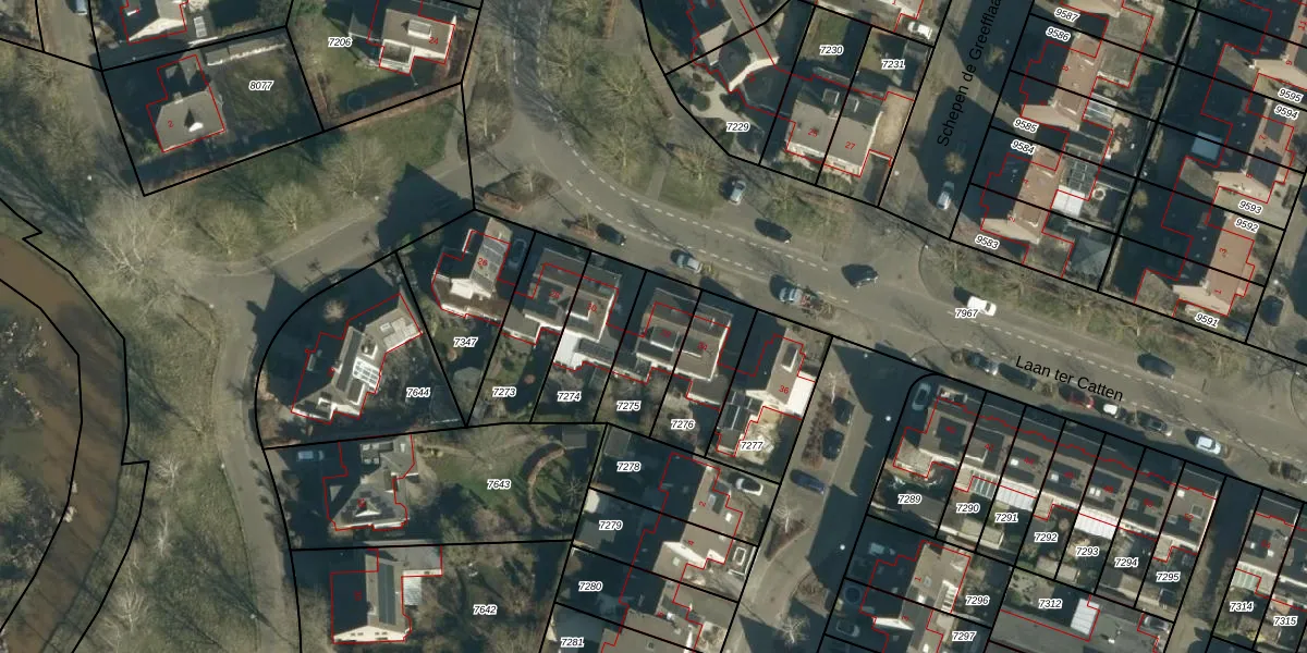 Laan ter Catten 32 is gelegen op kadastraal perceel NNN00E7275. Deze kadastrale aanduiding is uniek en wordt gebruikt door het Kadaster om eigendomsrechten en andere zakelijke rechten vast te leggen. Het perceel maakt onderdeel uit van de kadastrale gemeente Nuenen.