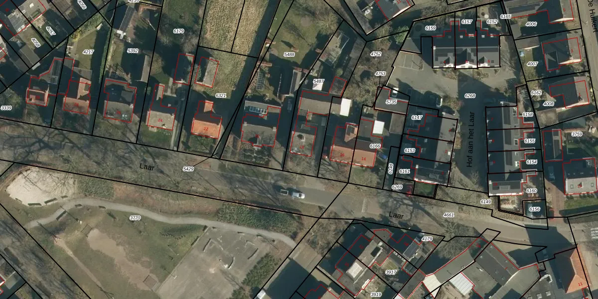 Het perceel waarop Laar 18 staat heeft een oppervlakte van 622 m². Dit is een groot perceel. De perceeloppervlakte wordt geregistreerd door het Kadaster. Gedetailleerde informatie over de maten van dit perceel kunt u vinden in het rapport Kadastrale kaart met maatvoering van Laar 18.