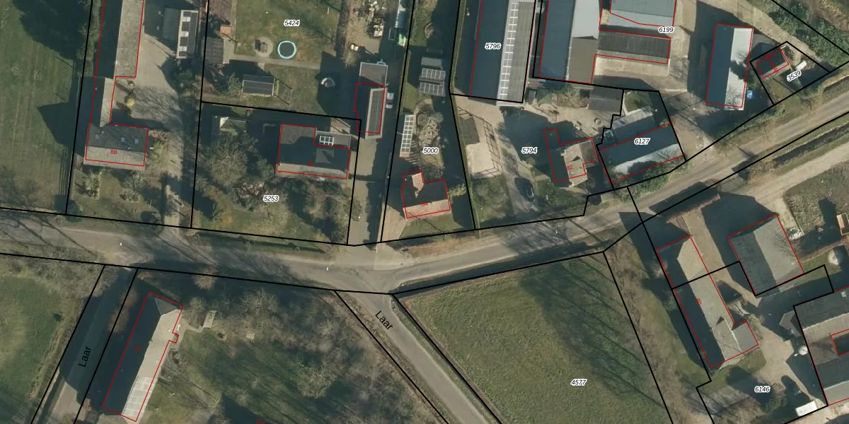 Het perceel waarop Laar 84 staat heeft een oppervlakte van 910 m². Dit is een groot perceel. De perceeloppervlakte wordt geregistreerd door het Kadaster. Gedetailleerde informatie over de maten van dit perceel kunt u vinden in het rapport Kadastrale kaart met maatvoering van Laar 84.