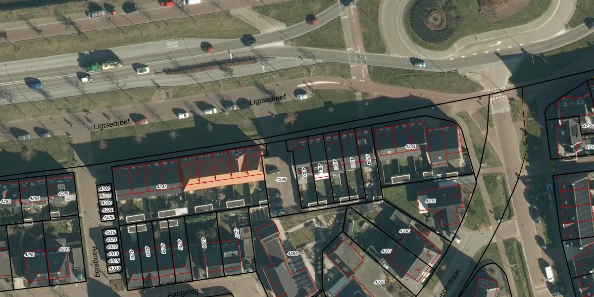 Ligtsedreef 10 is gelegen op kadastraal perceel NNN00D4300. Deze kadastrale aanduiding is uniek en wordt gebruikt door het Kadaster om eigendomsrechten en andere zakelijke rechten vast te leggen. Het perceel maakt onderdeel uit van de kadastrale gemeente Nuenen.