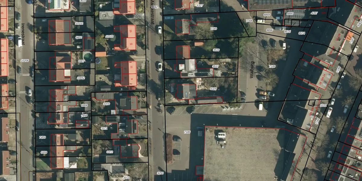 Het perceel waarop Marijkestraat 8 staat heeft een oppervlakte van 591 m². Dit is een groot perceel. De perceeloppervlakte wordt geregistreerd door het Kadaster. Gedetailleerde informatie over de maten van dit perceel kunt u vinden in het rapport Kadastrale kaart met maatvoering van Marijkestraat 8.
