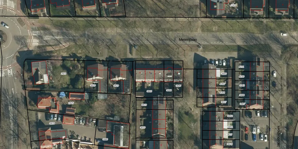 Het perceel waarop Meierijlaan 9 staat heeft een oppervlakte van 466 m². Dit is een groot perceel. De perceeloppervlakte wordt geregistreerd door het Kadaster. Gedetailleerde informatie over de maten van dit perceel kunt u vinden in het rapport Kadastrale kaart met maatvoering van Meierijlaan 9.