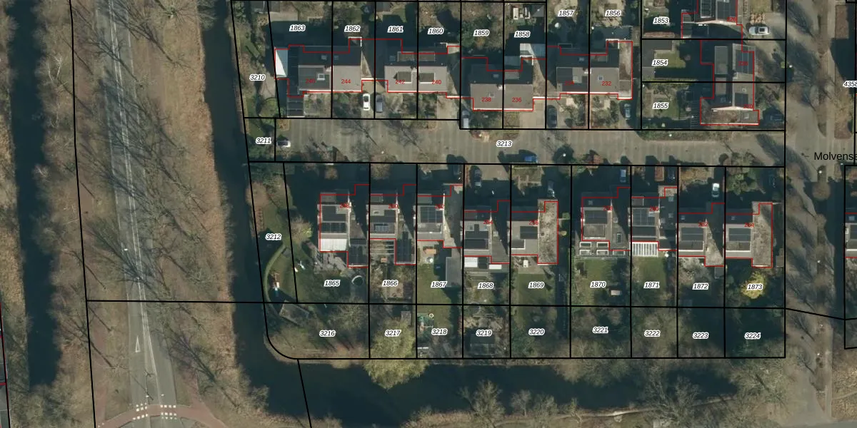 Het perceel waarop Molvense Erven 252 staat heeft een oppervlakte van 361 m². Dit is een groot perceel. De perceeloppervlakte wordt geregistreerd door het Kadaster. Gedetailleerde informatie over de maten van dit perceel kunt u vinden in het rapport Kadastrale kaart met maatvoering van Molvense Erven 252.