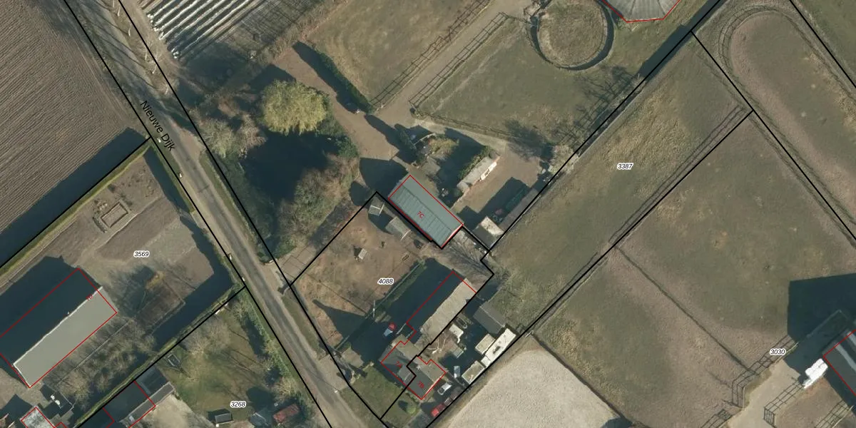 Het perceel waarop Nieuwe Dijk 7-C staat heeft een oppervlakte van 2,2 ha. Dit is een zeer groot perceel. De perceeloppervlakte wordt geregistreerd door het Kadaster. Gedetailleerde informatie over de maten van dit perceel kunt u vinden in het rapport Kadastrale kaart met maatvoering van Nieuwe Dijk 7-C.