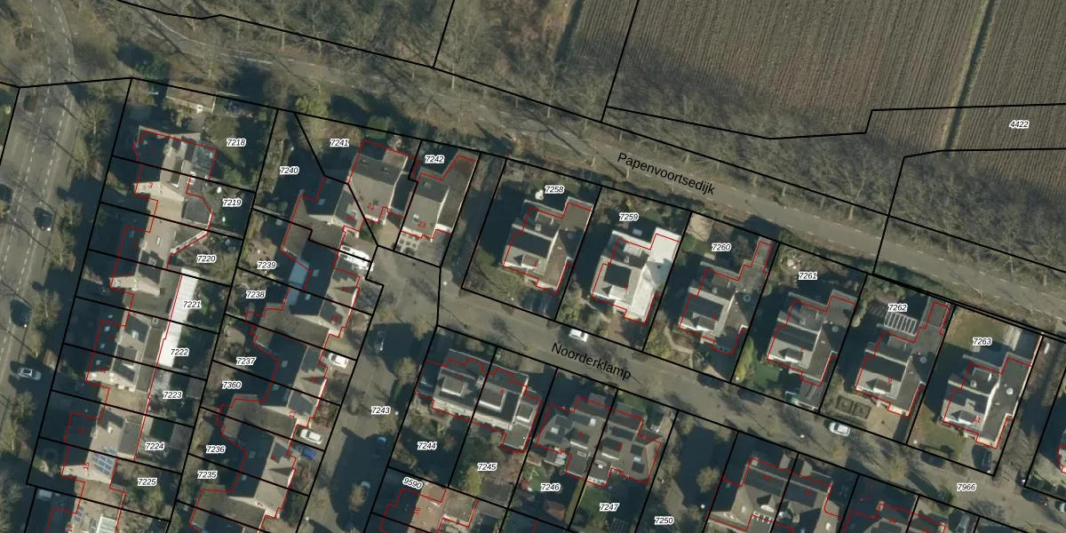 Het perceel waarop Noorderklamp 1 staat heeft een oppervlakte van 488 m². Dit is een groot perceel. De perceeloppervlakte wordt geregistreerd door het Kadaster. Gedetailleerde informatie over de maten van dit perceel kunt u vinden in het rapport Kadastrale kaart met maatvoering van Noorderklamp 1.